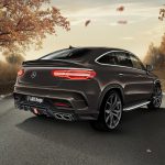 Am Heck des Mercedes-Benz GLE Coupés dominieren nach Styling-Kur prächtige Auspuff-Endrohre im trapezförmigen Design. Zwischen den beiden Endrohren montiert der Tuner neue Bremslichter im F1-Styling sowie einen brachialen Heckdiffusor. Zusätzlich verbaut der Mercedes-Spezialist einen Spoiler für den Kofferraumdeckel, der dank hochwertigem Material aus Carbon nicht nur ein Blickfang ist, sondern auch schick und profimäßig aussieht.