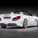 sl-r231-facelift-seitenschweller-beleuchtet-mlNicht unangetastet blieb auch die Heckpartie, die nunmehr mit einem hochglänzenden Heckdiffusor, einer LED-Rückfahrleuchte im Formel-1-Stil oder einer Heckspoilerlippe für deutlich mehr Abtrieb und einer damit einhergehenden Aerodynamik-Verbesserung aufwartet. Zudem spendierte Piecha dem SL Avalange GT-R mächtige 20-Zöller der Designlinie „MP1-Monoblock“ frontpoliertem Titan-Finish. Als passende Pneu-Dimensionen kommen 9,5 und 11 x 20 Zoll der Größe 255/30R20 vorne und 295/25 oder 305/25R20 zum Einsatz. Außerdem verfügt der SL nunmehr über eine Tieferlegung in Höhe von 25 Millimetern. Optional ist auch ein elektronisches Tieferlegungsmodul zu haben, so dass die Fahrzeugtiefe an der Vorderachse sowie Hinterachse separat eingestellt werden kann. Als Highlight ist ohne Zweifel die Sportabgasanlage oder das Komfort-Modul für das Variodach zu nennen, wobei letzteres die Öffnung des Verdecks mit einer Geschwindigkeit von bis zu 60 km/h ermöglicht. Öffnungs- und Schließvorgänge sind damit wahlweise mittels One-Touch-Bedienung aus dem Cockpit oder alternativ mittels Fahrzeug-Schlüssel aus der näheren Umgebung möglich.